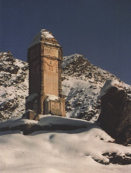 The Menare elem wa jahal monument is an ornate pillar on top of a hill